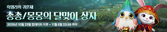 1. 10월 23일(목) 업데이트 점검 이후부터 10월 29일(수) 24시까지 필드 몬스터 사냥을 통해 '총총이의 달맞이 상자'를 획득할 수 있습니다.