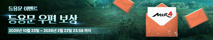 미르4의 등용문 서버를 이용해주시는 용사님을 위해 준비된 우편 보상 이벤트에 대해 안내 드립니다.