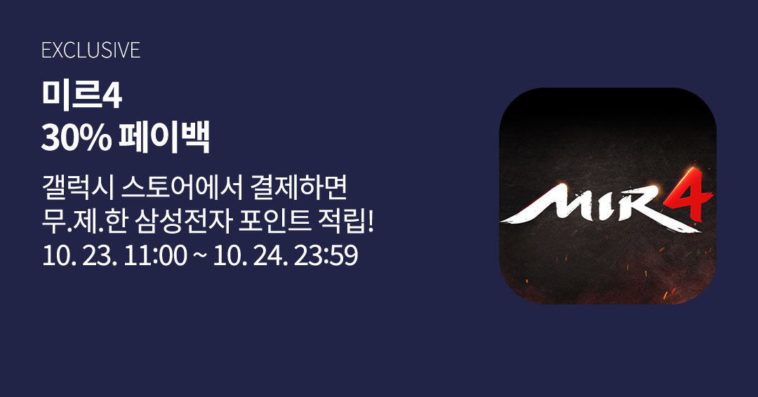 ▶ [갤럭시 스토어] 미르4 30% 페이백 이벤트 참여하기 ◀