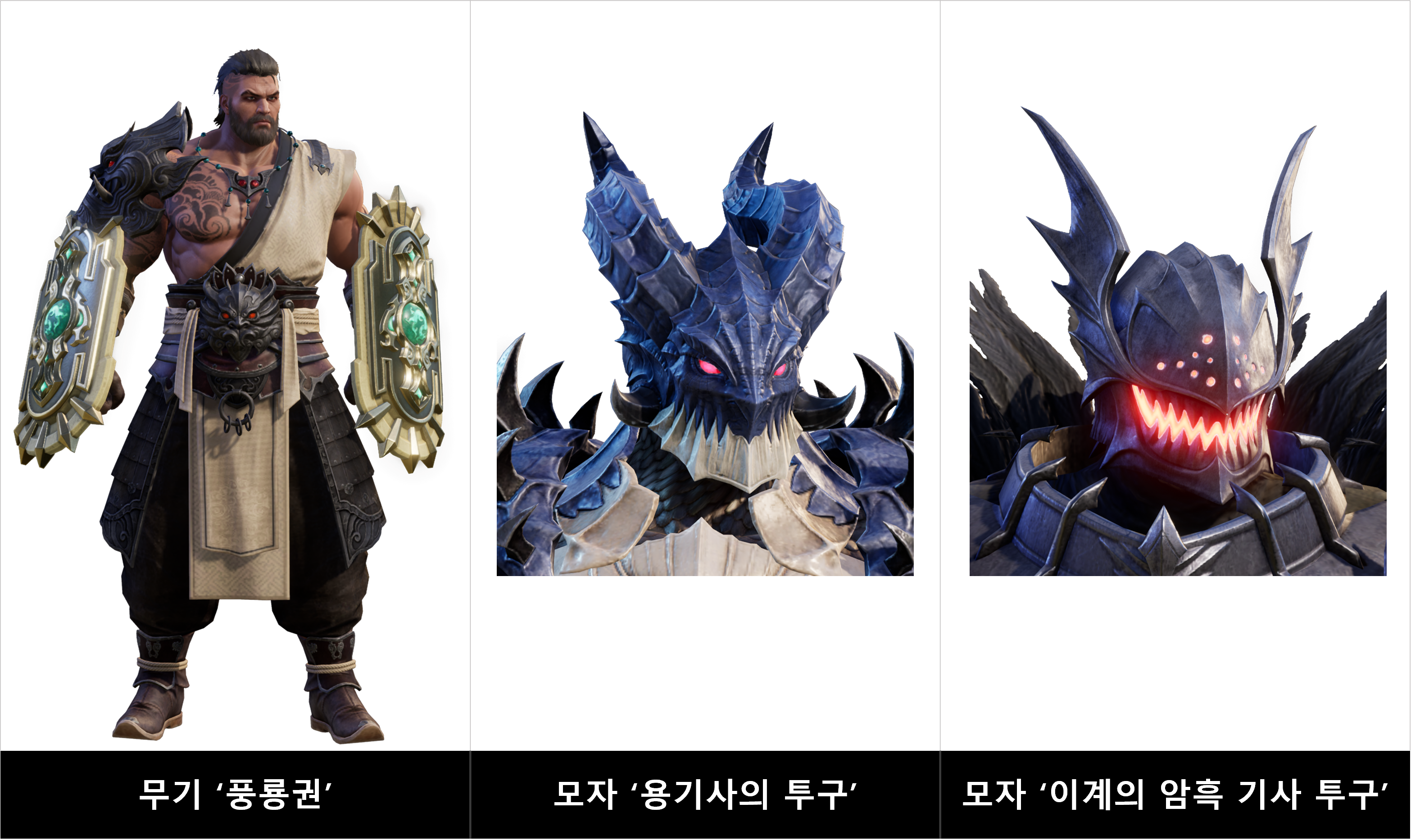 - 1) 새롭게 추가되는 투사 의상은 무기 1종/모자 2종/복장 2종으로 구성되어 있습니다.