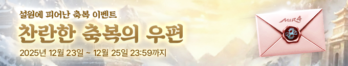 - 이벤트 보상 우편은 2025년 12월 25일(수) 24시까지 수령하실 수 있습니다.